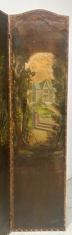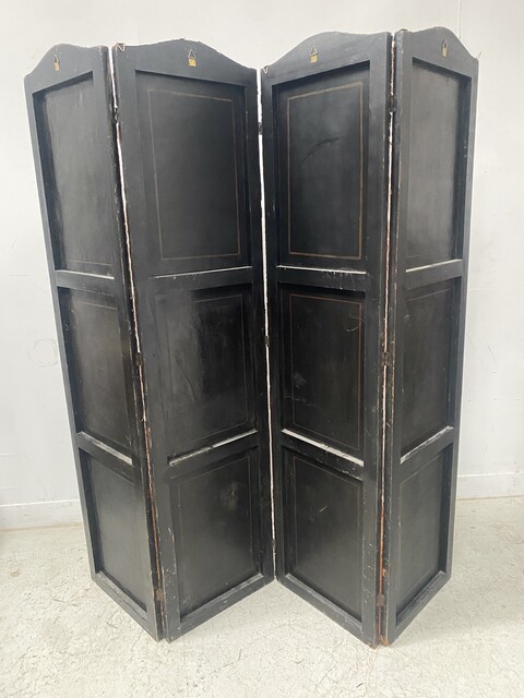 Paravent a quatre feuilles à décor de paysages animés Bon état de conservation Dimension H 182 cm L 45 x quatre panneaux cm P 2.5 cm . XIX siècle .