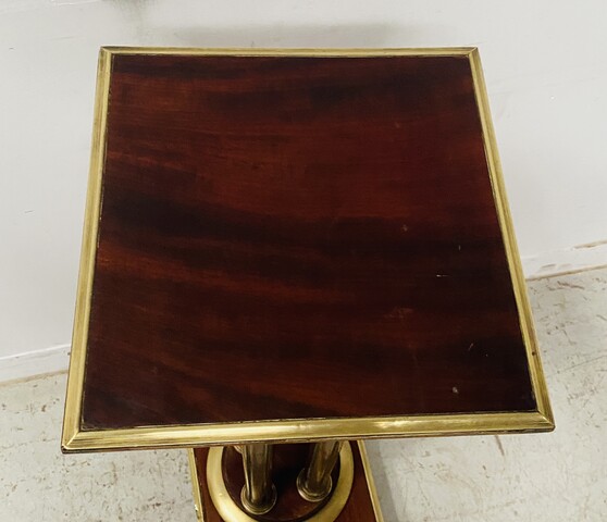 sellette style Napoléon III en Placage acajou et filets de laiton quatre colonnes reposant sur socle carré Dimension H 109 cm L 33 cm P 33 cm début du . XX siècle .