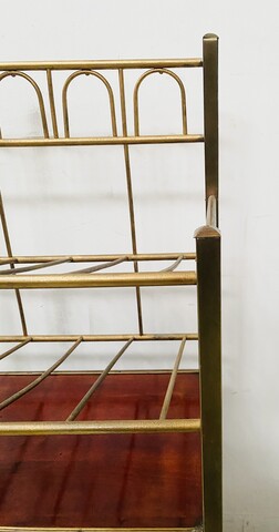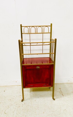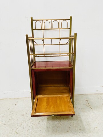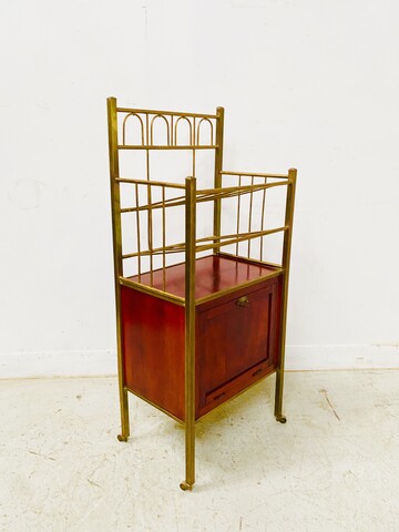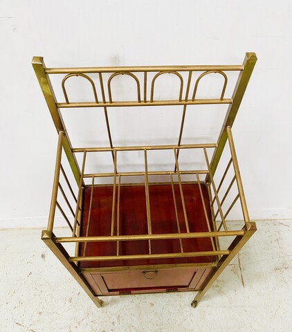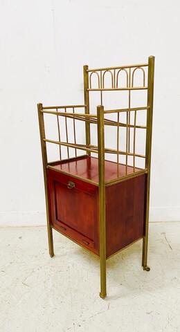 casier à musique formant bar en laiton et caisson en bois d'acajou vernis H 113/94 cm L 48 cm P 34 cm . XX siècle .