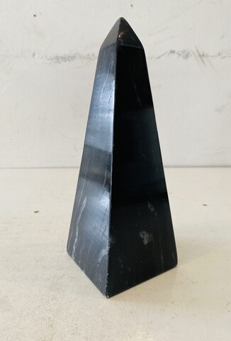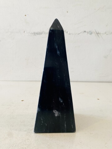 obélisque en marbre noir veiné de blanc et gris Dimension H 21 cm L 7.5 cm Epoque . XX siècle .