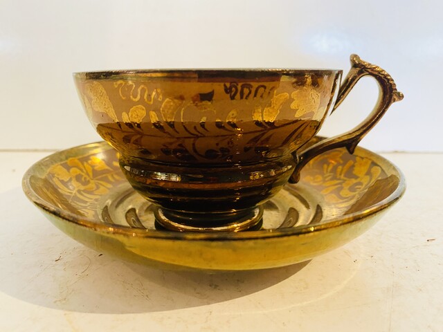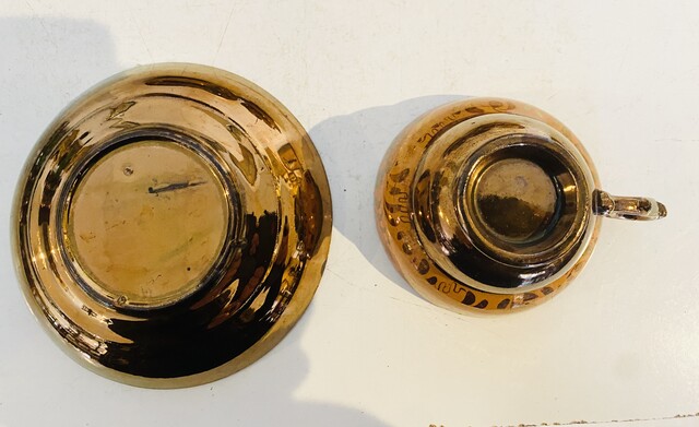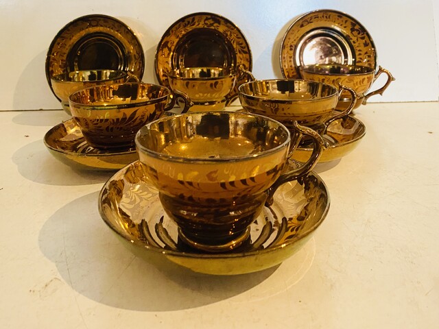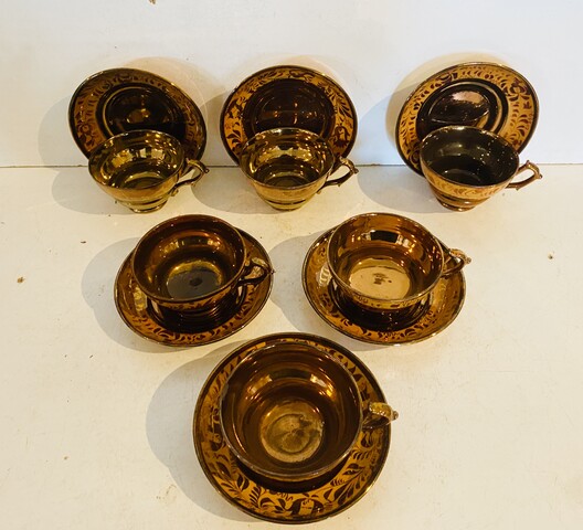 service à café en jersey comportant six à décor floral . XX siècle .
