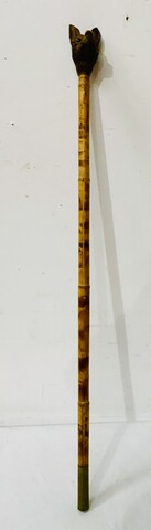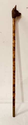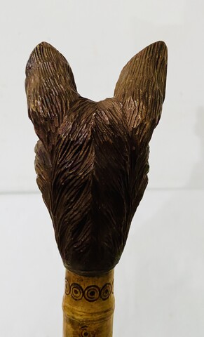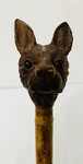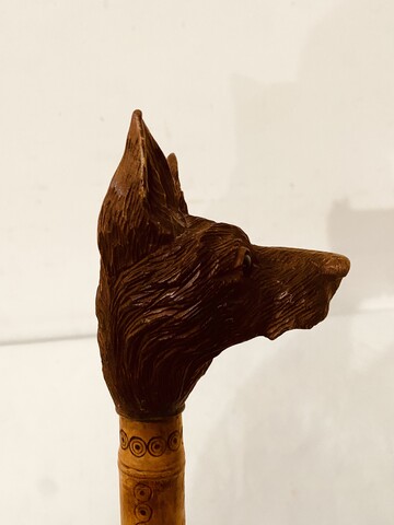 canne dit le chien d'Emaus à décor d'une tête de chien finement sculpté H 108 cm . XX siècle .