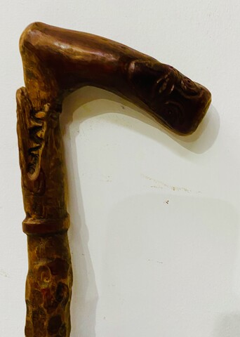canne viking finement sculpté d'une tête de viking fut bambou H 100 cm . XX siècle .