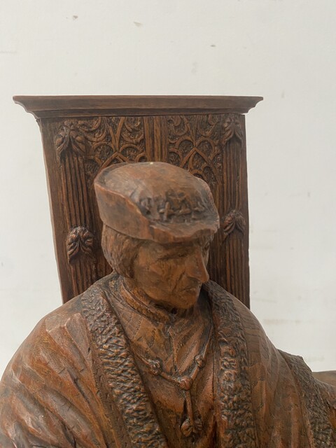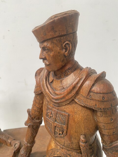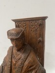 sculpture sur bois en chêne massif représentant deux important notables finement sculpté H 54 cm L 38 cm P 21 cm . XX siècle .