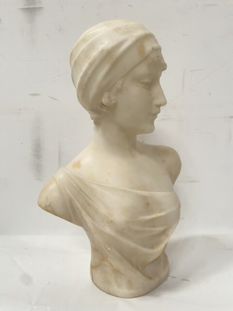 sculpture d'un buste de jeune fille finement sculpté marbre H 44 cm L 30 cm P 18 cm . XX siècle .