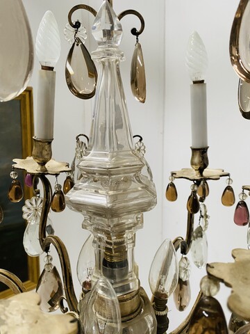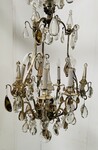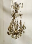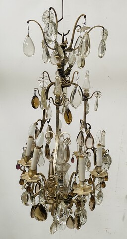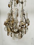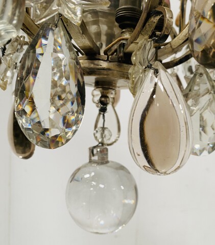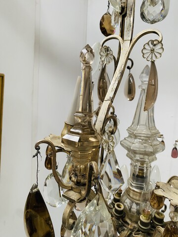 important lustre cage monture en bronze argenté riche ornementation de pampille facettées comportant neuf bras de lumières et neuf couteaux H 100 cm diamètre 55 cm fin du . XIX siècle .