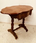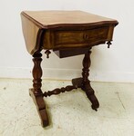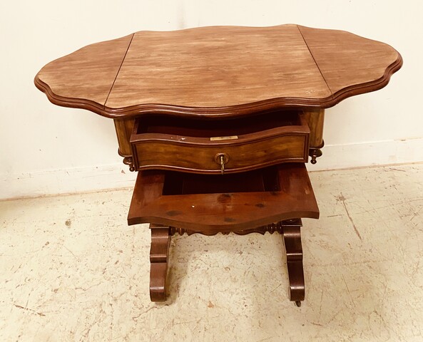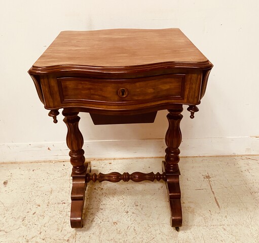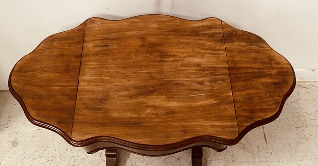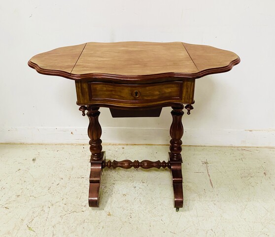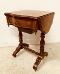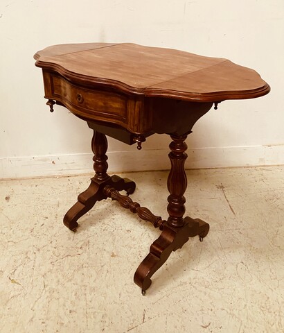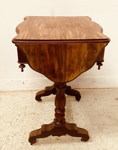 travailleuse époque Napoléon III en acajou et placage d'acajou comporte deux abatants un tiroir en façade et une tirette en bon état H 72 cm L 50/94 cm P 50 cm . XIX siècle .