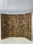 Paravent a quatre feuilles en tapisserie à décor de paysages animés Dimension H 195 cm L 252 cm (63 x quatre panneaux) P 2.5 cm . XX siècle .