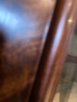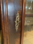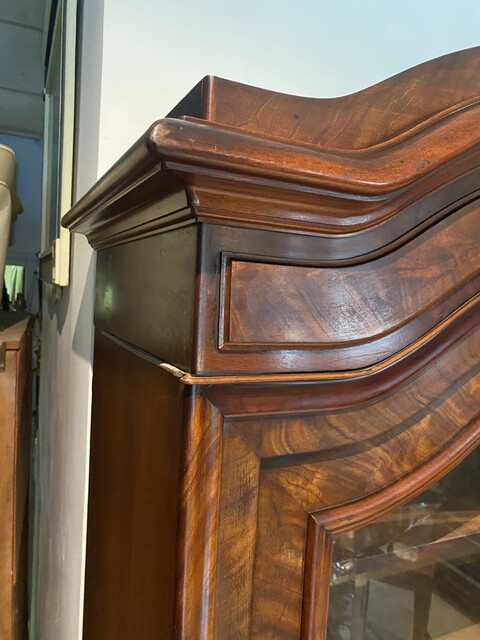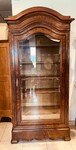 vitrine époque Louis Philippe en placage d'acajou flamé ouvrant en façade par une porte vitrée verre biseauté comporte un tiroir en partie basse intérieur quatre étagères plus un tiroir à clés H 220 cm L 110 cm P 42 cm . XIX siècle .