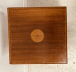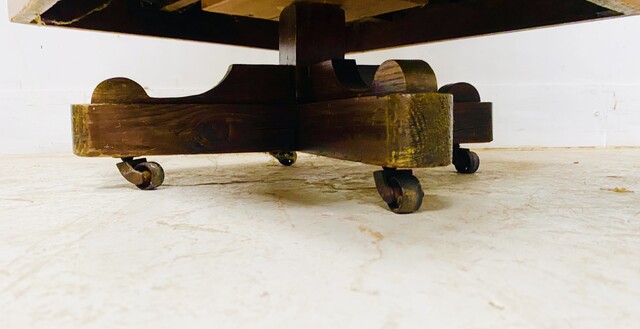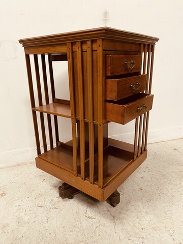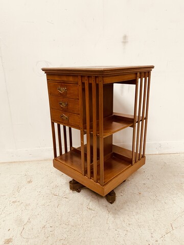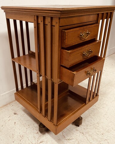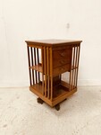 bibliothèque anglaise tournante en acajou et filet de marqueterie comporte une rangée de trois tiroirs H 83 cm L 48 cm P 48 cm fin du . XIX siècle .