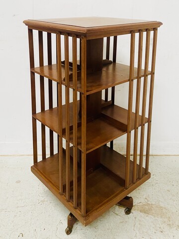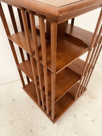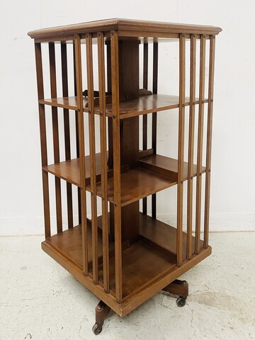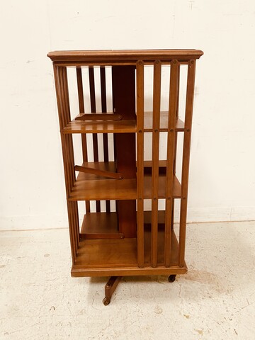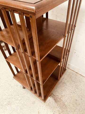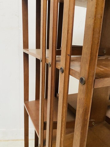 bibliothèque tournante en noyer massif portant l'estampille de G Lancelin 24 place des Vosges Paris H 122 cm L 58 cm P 58 cm cassiers 34.5 cm x 22 cm x 31 cm 30 cm x 22 cm x 31 cm 25.5 cm x 22 cm x 31 cm . XX siècle .