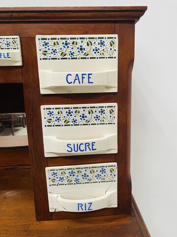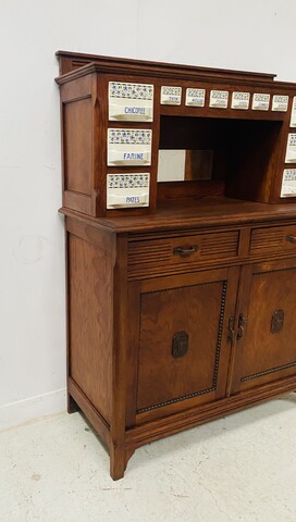buffet deux corps formant meuble à épices (boite épice cassé et ébréchure voir photos de détails) . XX siècle . H 155/98 cm L 113 cm P 50/33 cm début du . XX siècle .