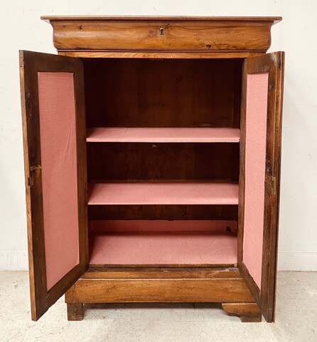 meuble époque Louis Philippe dit meuble parisien comportant deux portes un tiroir ,à doucine en noyer massif H 145 cm L 105 cm P 48 cm . XIX siècle .