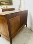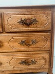 Commode de style Louis XIV en chêne clair massif Deux montants cannelés en arrondis cinq tiroirs en façade a poignées et entrées de serrures en laiton Dimension H 85 cm L 128 cm P 63 cm Epoque . XVIII siècle .