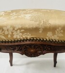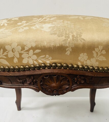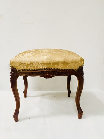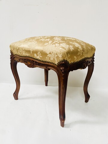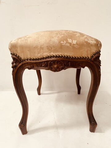 tabouret de style Louis XV en noyer massif recouvrement tissus Dimension H 48 cm L 50 cm P 42 cm début du. XX siècle .