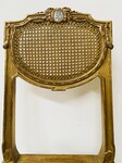 paire de chaises louis XVI en bois doré finement sculptée dossier assises en cannage plaque de Wedgwood à décor de putti H 90 L 40 cm P 39 cm fin du . XIX siècle .