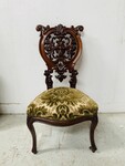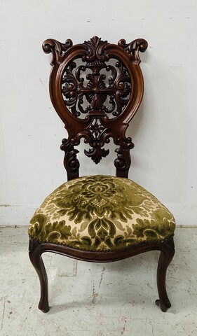 chaise en acajou massif époque Napoléon III richement sculpté d'enroulements et motifs feuillagés H 91 cm L 47 cm P 40 cm assise H 43 cm . XIX siècle .