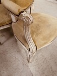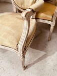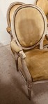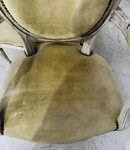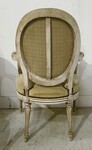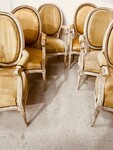 suite de six fauteuils à médaillon style Louis XVI bois laqué blanc mouluré à cannelés anciens travail de style Louis XVI H 88cm L 58 cm P 44 cm fin du . XIX siècle .