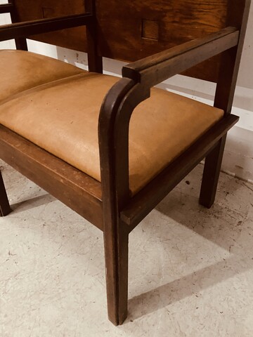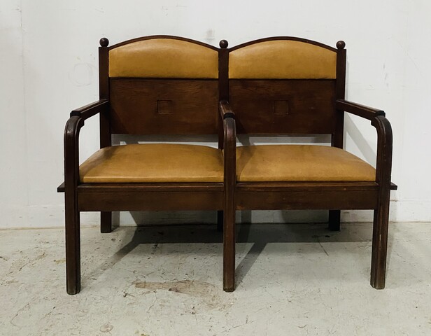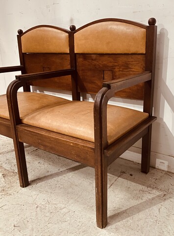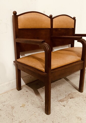 Banquette deux place art déco en acajou massif (Etat d'usage recouvrement à changer) Dimension H 101 cm L 130 cm P 59 cm . XX siècle .