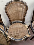 suite de huit chaises en bois patiné assises dossier cannage six au model deux au model (à prévoir remplacement plusieurs cannages) H 94 cm L 50 cm P 45 cm assise H 48 cm . XX siècle . CHAISES