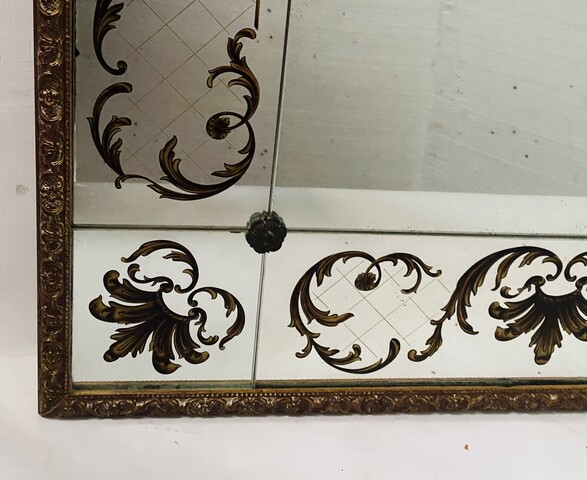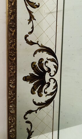miroir circa1950 verre églomisé décor antique cadre stuc doré H 120 cm L 90 cm P 4 cm . XX siècle .