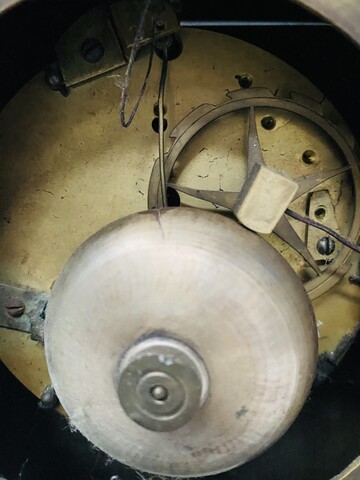 pendule époque empire en bronze patiné cadran signé Pion Paris cadran et ornementation en bronze ciselé mouvement à fil H 38 cm L 19 cm P 10 cm milieu du . XIX siècle .