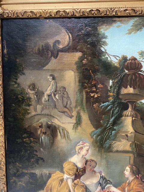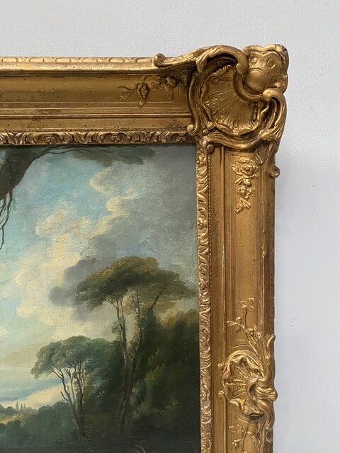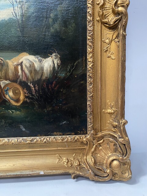 cadre H 85 cm L 100 cm P 10 cm (cadre en l'état redoré)peinture H 69 cm L 81 cm P 1.5 cm