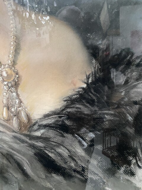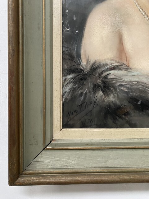 œuvre de Yves Diey portrait d'une élégante dans encadrement