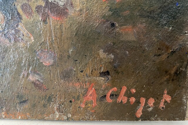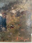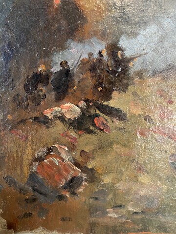 Alphonse Chigot peintre français. né le 23 octobre 1824 à Graçay et mort le 8 octobre 1917 à Valenciennes sujet scène militaire peinture H 26 cm L 34 cm . XIX siècle .