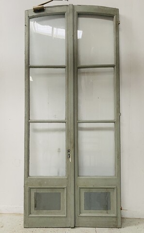paires de portes à grand carreaux partie haute arrondis partie basse finement sculptée H 316 cm / 310 cm L 136 cm P 4.5 cm du . XIX siècle .