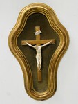 Crucifix sur cadre en bois doré patiné Objet de dévotion