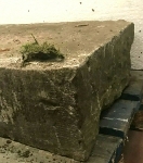 Seuil de porte en pierre bleue Coin gauche arrondi Dimension H 19 x L 118 x 34 cm Epoque XVIII siècle