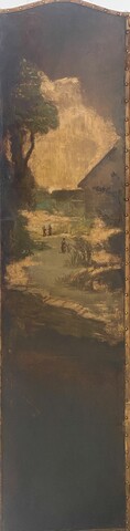 Paravent a quatre feuilles à décor de paysages animés Bon état de conservation Dimension H 182 cm L 45 x quatre panneaux cm P 2.5 cm . XIX siècle .