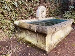 grand bassin d'extérieur en pierre massif formant fontaine