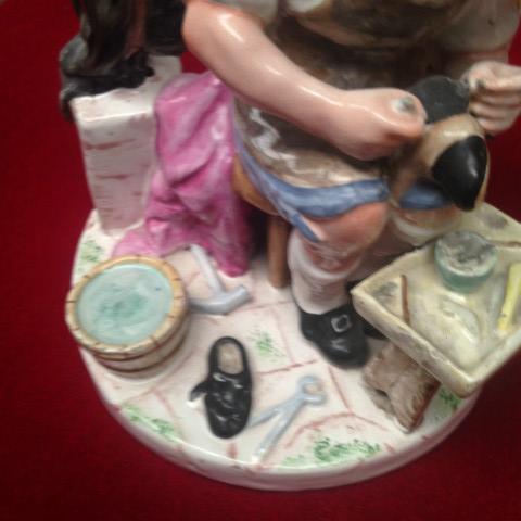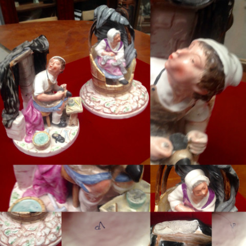 paire de sujets faïence polychrome thème les petits métiers . XIX siècle . ( accidents )