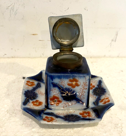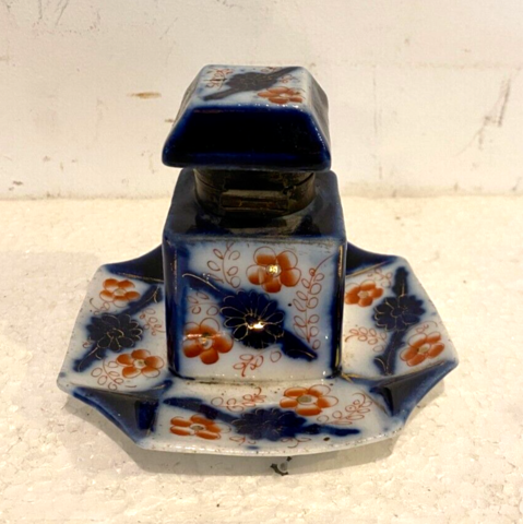 Encrier en porcelaine Allemande Motif a décor de fleurs Bon état Dimension H 8 x L 9.5 x 9.5 cm XX siècle