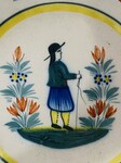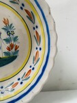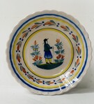 plat rond creux en faïence de Quimper portant la marque de HR petit fêle H 6.5 cm L 24.5 cm . XX siècle .