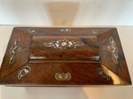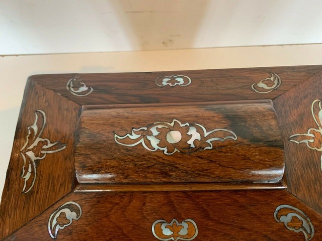 Joli coffret a bijoux en bois de palissandre Décoration en incrustation de nacre Bon état général petites usures du temps Dimension H 18 x L 28 x 15 cm Epoque Napoléon III