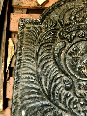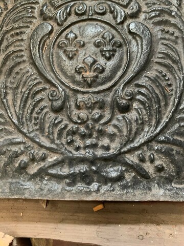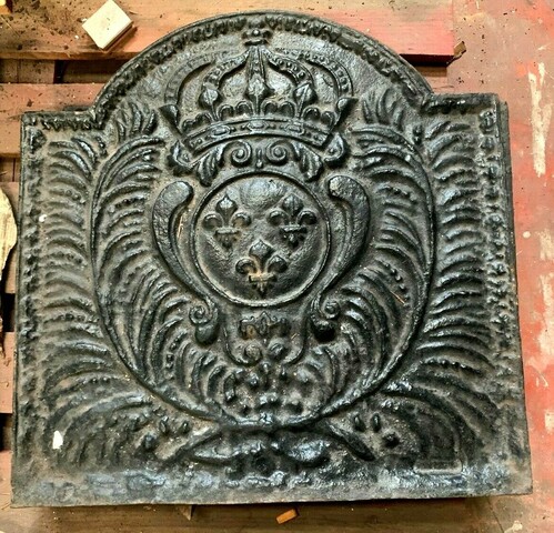 Plaque de fond de cheminée en fonte de fer Décor de fleurs de lys couronnées Bon état Dimension H 55 x L 55 x 4 cm Epoque XIX siècle Plus de photos sur simple demande TEL 0609061579 Pour une livraison a l’international, me contacter merci