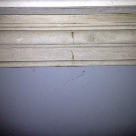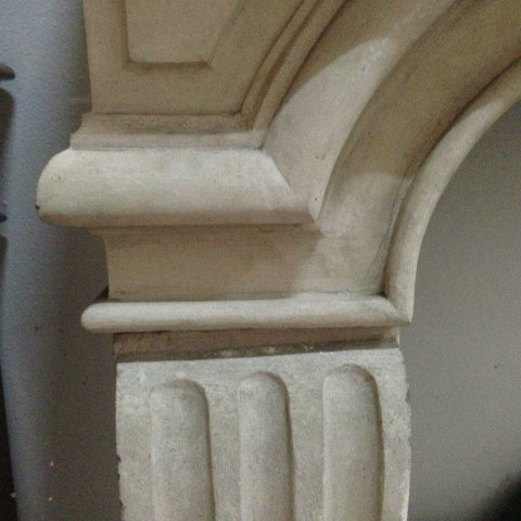cheminée régence en pierre jambage à cannelure bandeau à gaudirons . XX siècle . size L 205 cm H 111 cm P 35 cm foyer L 94 cm H 88 cm