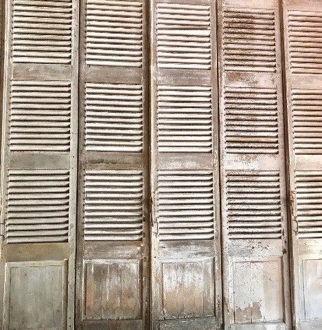 Exceptionnelle suite de quinze volets du XIX siècle Fabrication en chêne massif Model à persienne sur sous bassement a panneau Usures d'usage Epoque XIX siècle. Dimension H 400 cm L 80 cm P 5 cm Livraison possible nous consulter pour un devis