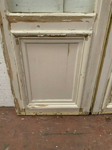 retrait dans notre entrepôt gratuitEnsemble de trois portes de séparation Ossature en sapin massif patiné Partie supérieure vitrée ( une vitre cassée ) bon état Dimension H 292 x L 222 x 3,5 cm Epoque XIX siècle Plus de photos sur simple demande TEL 0609061579 Pour une livraison a l’international, me contacter merci