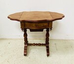 travailleuse époque Napoléon III en acajou et placage d'acajou comporte deux abatants un tiroir en façade et une tirette en bon état H 72 cm L 50/94 cm P 50 cm . XIX siècle .