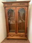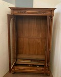 Vitrine Napoléon III en noyer Deux portes et un tiroir en façade Intérieur a trois étagères et deux petits tiroirs de rangement Pieds boules Verres biseautés Très bon état Epoque XIX siècle Dimension H 230 x L 140 x 52 cm