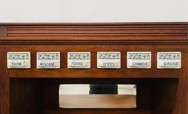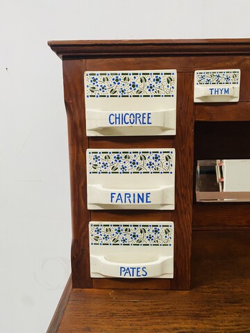 buffet deux corps formant meuble à épices (boite épice cassé et ébréchure voir photos de détails) . XX siècle . H 155/98 cm L 113 cm P 50/33 cm début du . XX siècle .