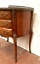 retrait dans notre entrepôt gratuitPetite commode demi lune de style Louis XV a fond de cubes Trois tiroirs en façade Quatre pieds cambrés a sabots de bronze Dessus en plateau de bois a galerie de laiton ajouré Bon état Dimension H 74 x L 62 x 36 cm XX siècle