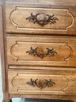 Commode de style Louis XIV en chêne clair massif Deux montants cannelés en arrondis cinq tiroirs en façade a poignées et entrées de serrures en laiton Dimension H 85 cm L 128 cm P 63 cm Epoque . XVIII siècle .