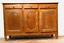 Bahut de style Louis XV en merisier massif Trois portes moulurées et panneautées Pieds cambrés et traverse chantournée Trois tiroirs en façade et plateau bois Bon état Dimension H 111 x L 168 x 51 cm Epoque XIX siècle