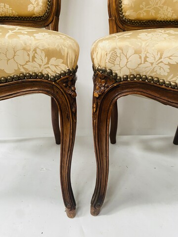 paire de chaises style louis XV en noyer massif finement sculptée (recouvrement bon état) H 85 cm L 50 cm P 43 cm début du . XX siècle .