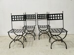 quatre chaises en fonte de fer à boules en laiton H 85 cm L 49 cm P 40 cm . XX siècle .